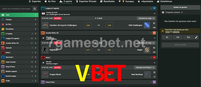 O Vbet oferece uma grande seleção de opções de apostas em e-sports com probabilidades competitivas